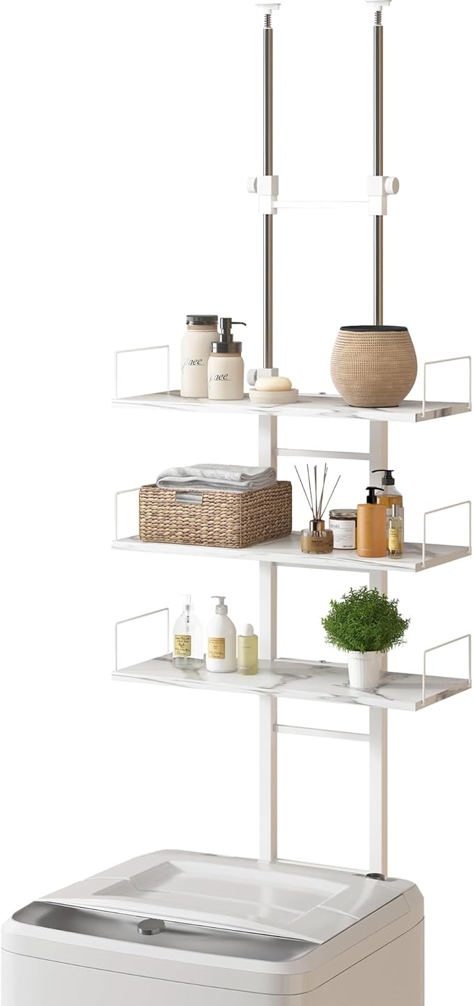 LYNCOHOME ランドリーラック 突っ張り 大理石調 おしゃれ 洗濯機ラック 壁面収納 一人暮らし 8段階 高さ調節 転倒防止 幅60cm 天井193-260cm対応