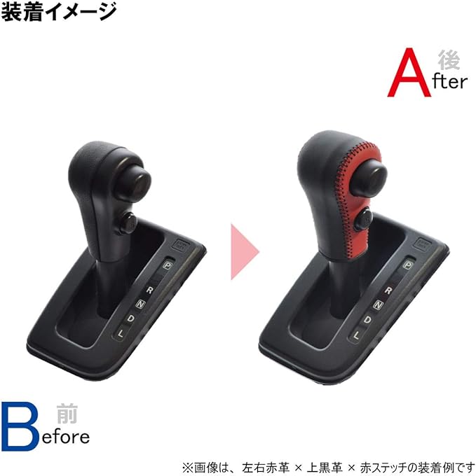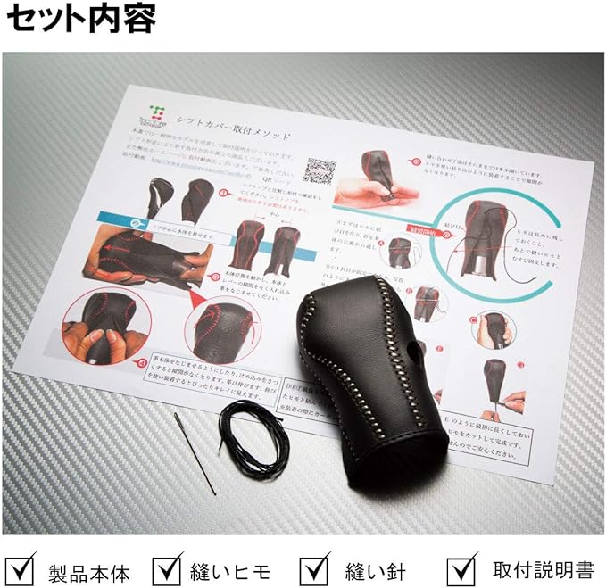 完全車種別専用設計、ウレタンとは違う手触り。張替仕様で純正然とした仕上がり。純正シフトレバーの上から取り付けます。