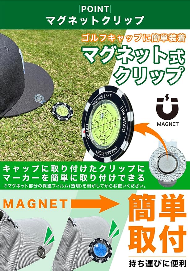 【マグネット機能】帽子のつばに簡単に取り付けられる強力マグネット式ゴルフマーカー