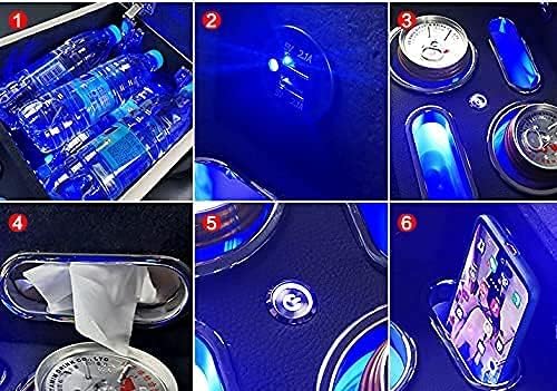 【LED照明】スイッチを押すとブルーのLED照明が鮮やかに点灯。車内が暗くても、USBポートや飲み物置き・収納スペースの照明が明るく快適に利用出来ます。点灯箇所(ドリンクホルダー 2、小物入れ 2、USB 2、アームレスト下の収納ボックス内)