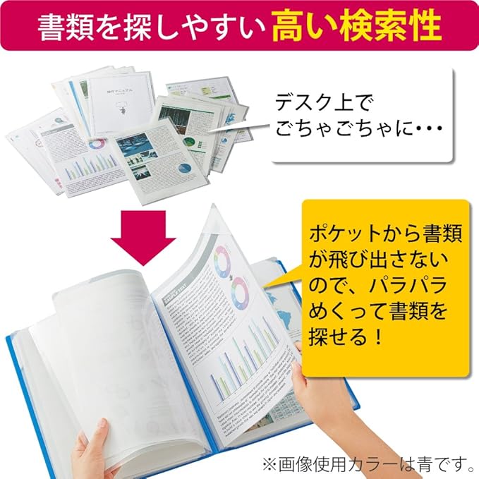 ●ペラペラめくっても書類がポケットから飛び出ることがなく、書類が探しやすくなっています。