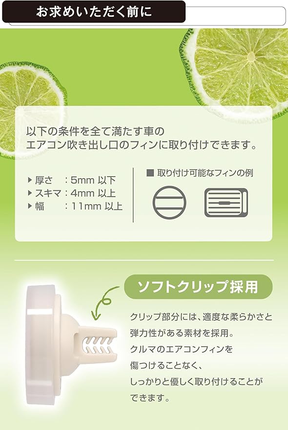 ✅【ソフトクリップ採用】 取付クリップには、適度な柔らかさと弾力性がある素材を採用。 クルマのエアコンフィンを傷つけることなく、しっかりと優しく取り付けることができます。