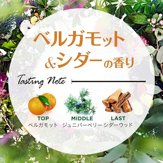 爽やかなベルガモットにシダーの深みで心落ち着く“ベルガモット&シダー”の香り