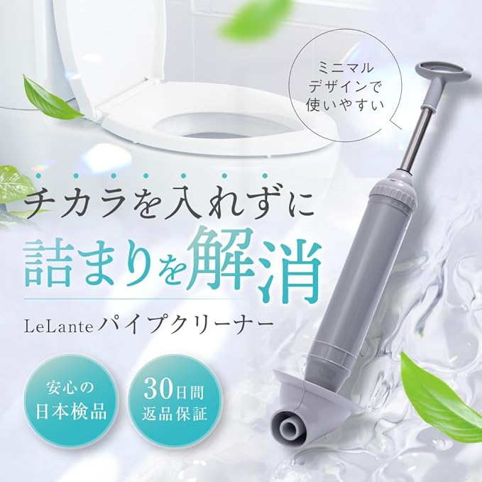 【真空式ポンプ】真空ポンプ方式で水を吸引し、排出するため、従来のすっぽん(ラバーカップ)に比べて5倍の吸引力があります。失敗が少なく、効果的に詰まりを解消します。加圧式ハンドルが付いており、押すことと引くことの2段階方式で使います。女性でも簡単に操作でき、使い方が簡単で、誰でもすぐに使い始めることができます。
