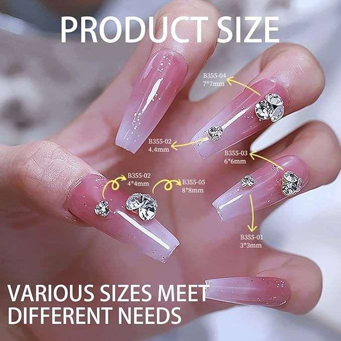 【ネイルストーン】複数のラインストーンが積み重ねたネイルパーツです。キラキラ輝いてとても綺麗です。ネイルのワンポイントとしておしゃれです。 【高品質の素材】ネイルストーンは鏡面のようなガラスで作られており、光に反射して、美しい輝きを放ちます。細工が精巧で、硬くて耐久性があります。 【サイズ】3mm*3mm、4mm*4mm、6mm*6mm、7mm*7mm、8mm*8mm。豊富なサイズをご用意しましたので、様々なネイルに大活躍! 【幅広い用途】立体的で存在感があふれて、指先に置くだけで、3d効果のネイルができます。ネイルだけではなく、スマホケース、レジン、クラフトなど様々なデコレーションにご利用いただけます。 【パッケージ】ネイルパーツ ストーン約40個セット(ランダムサイズ)。