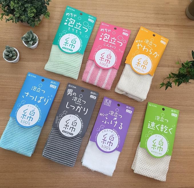 ●コシのあるかための綿糸使用で心地よい刺激でしっかりさっぱり洗えます。