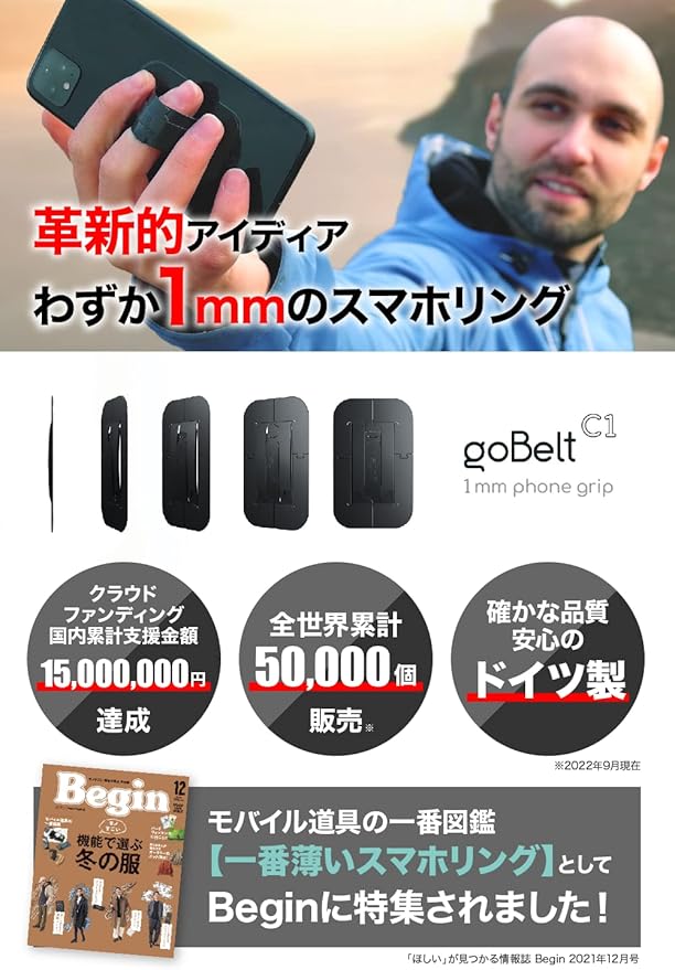 【超薄型スマホリング&スタンド】革新的アイディアで1mm、1gを実現。クラウドファンディングで1,500万円以上、全世界累計50,000個以上販売されている話題の極薄スマホリング
