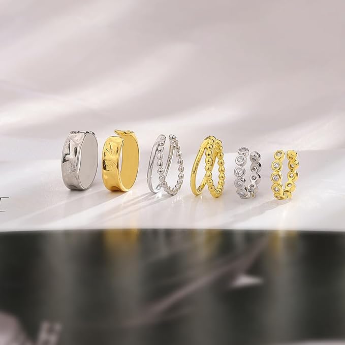 DALISITO イヤーカフ フェイクピアス ピアス イヤリング 片耳用 耳掛け 軟骨 挟む ピアス穴不要 シンプル シルバー 3個入り | etshop