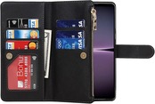 for Xperia 1 IV ケース for Sony Xperia 1IV SO-51C / SOG06 縄掛けケース 手帳型 財布型 ICカード コインポケット ストラップ付き カード 収納 小銭入れ ファスナーポケット付き PUレザー 6色 ブラック