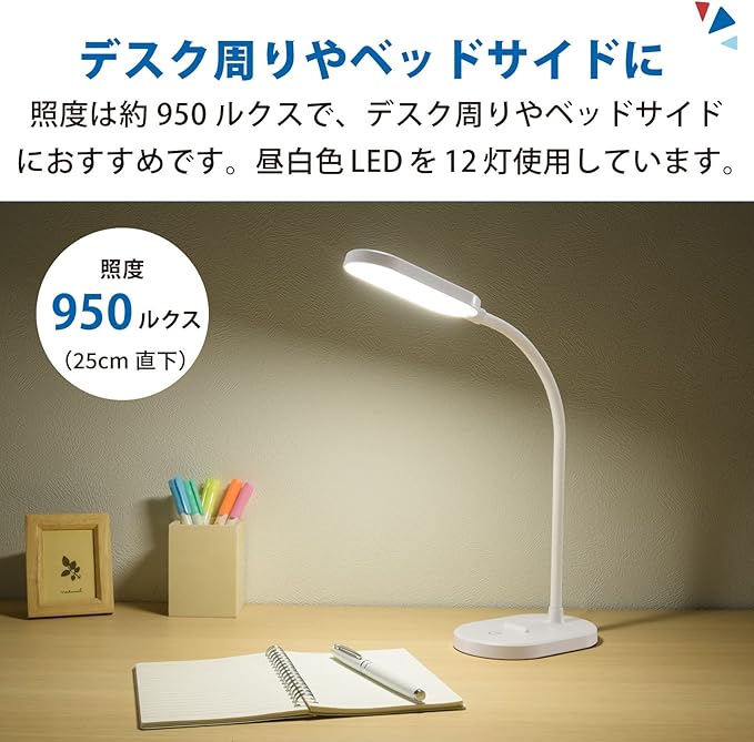 ● フレキシブルアーム● 全光束 約170ルーメン● 照度 約950ルクス(直下25cm)● 本体カラーはホワイト
