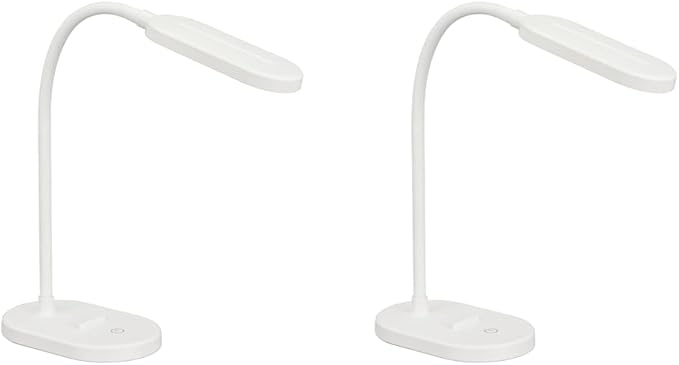 このオーム(OHM) デスクランプは、デスクやベッドサイドなどの狭いスペースでもおすすめのミニマリストデザインです。12本のLED光源とフレキシブルアームを備え、昼白色の明るい光を提供します。約170ルーメンの全光束と約950ルクスの照度は、読書や作業に最適です。USB電源で動作し、スマホスタンドも付属しています。本体はホワイトのプラスチックで、約247gの軽量でコンパクトなデザインです。2本セットでお届けします。