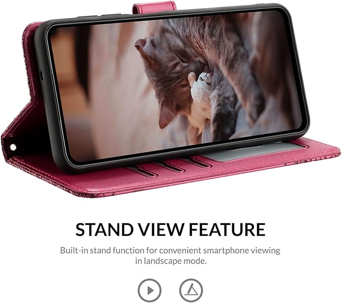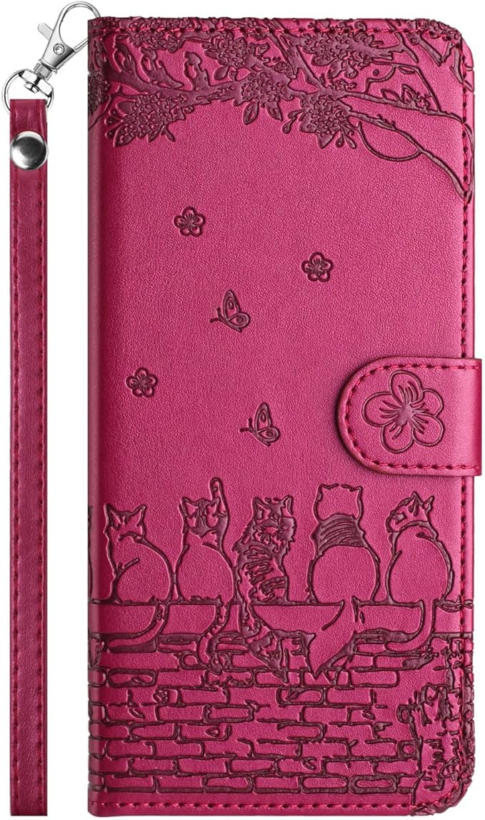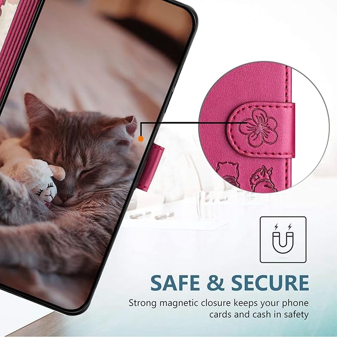 ALSDKEZI AQUOS sense6 ケース 手帳型 可愛い 猫柄 Sharp アクオス Sense 6 SHG05/SH-54B 携帯カバー 蝶の花柄 スマホケース おしゃれ カード入れ 財布型 Sense 6s SHG07 カバー 動物柄 カード収納 スタンド機能 軽量 便利 内蔵マグネット式 紫赤 純色シンプルデザイン - Violet Red