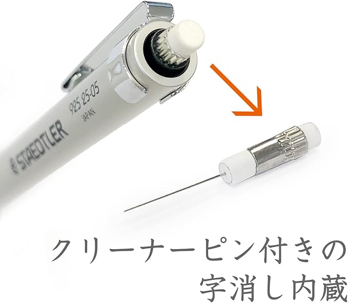 【クリーナーピン付き】先端の芯詰まり解消に役立つクリーナーピン付き字消し内蔵