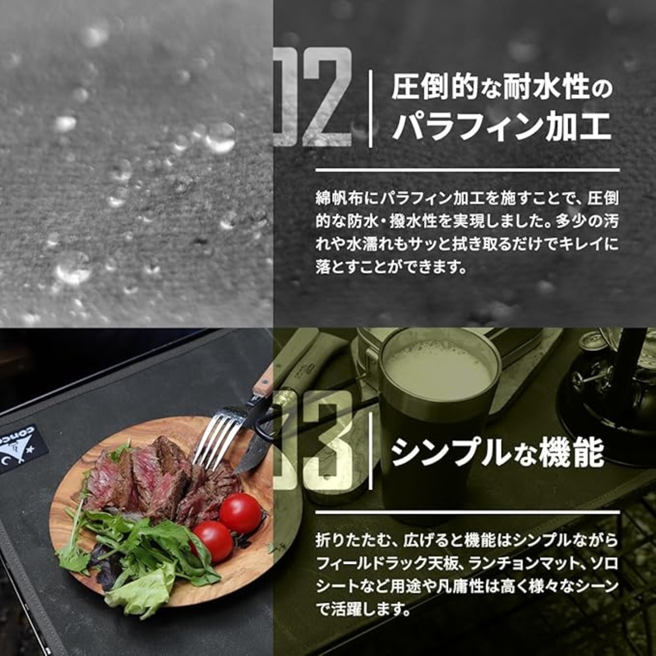 【フィールドをハックするこの一枚】用途に富んだミニマルマルチシート「コンコス フィールドランチョン」ランチョンマットやフィールドラックの天板、携帯ソロシートやバッグの間仕切りにも スタイルに合わせた使い方ができます。