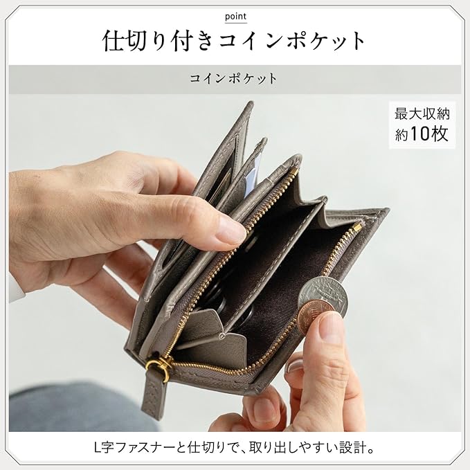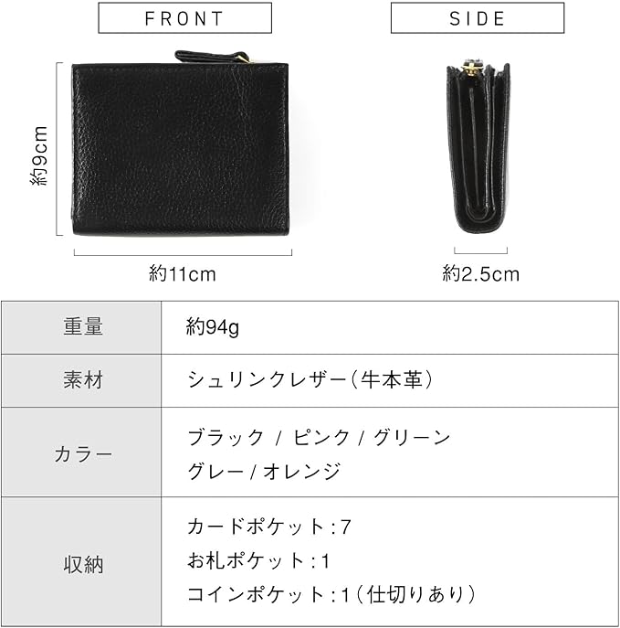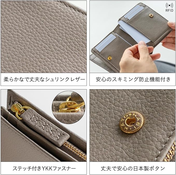 ✅【傷のつきにくく柔らかなシュリンクレザー】外側の革は牛革(シュリンクレザー)を使用し、柔らかな手触り。 傷がつきにくく耐久性があるので毎日使う財布にピッタリです。