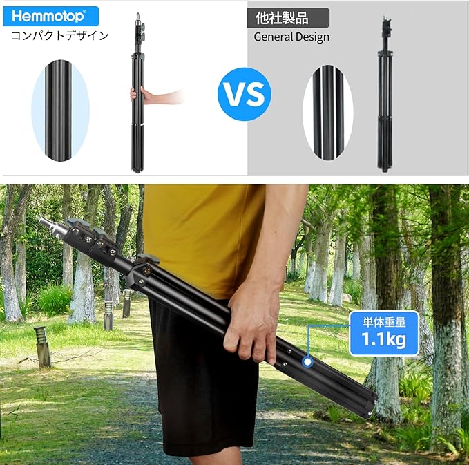 Hemmotop 撮影用 ライトスタンド 2本キット 2m ストロボスタンド 写真スタジオ用 vive 三脚 アンブレラ ビデオライト ソフトボックス用 フラッシュスタンド 黒 スチール合金製