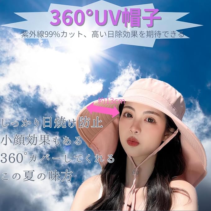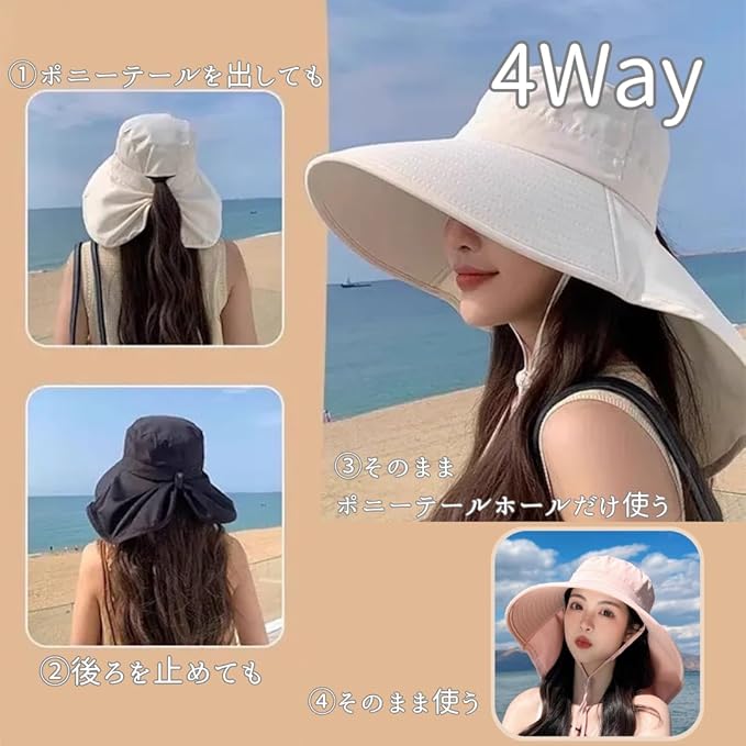 [toanysia] UVカット 【360 首までUVカット】4way 日よけ帽子 あご紐付き 小顔 通気性 レディース アウトドア 折りたたみ可能 ピンク/グレー/ホワイトベージュ