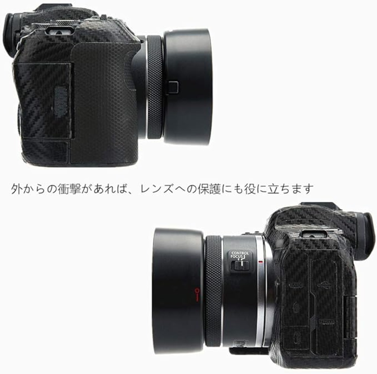 カメラレンズの説明 カノン RFマウント用の50mm f/1.8 STMレンズ用プロテクター。雑光防止とレンズ保護に加え、可逆式設計で便利に使用できます。