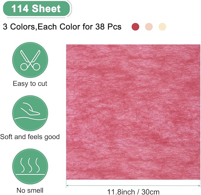 パッケージに含まれるもの: 144枚(3色、各色48枚)の花包装紙、サイズは30 x 30cm / 11.8 x 11.8"(縦 横)