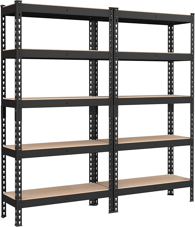 SONGMICS スチールラック 5段 スチールシェルフ オープンラック オープンシェルフ ラック 棚 おしゃれ キッチンラック 収納ラック 収納棚 本棚 キッチン 収納 総耐荷重875kg 150*75*30cm ブラック2個セット 1箱2個入り GLR302B01