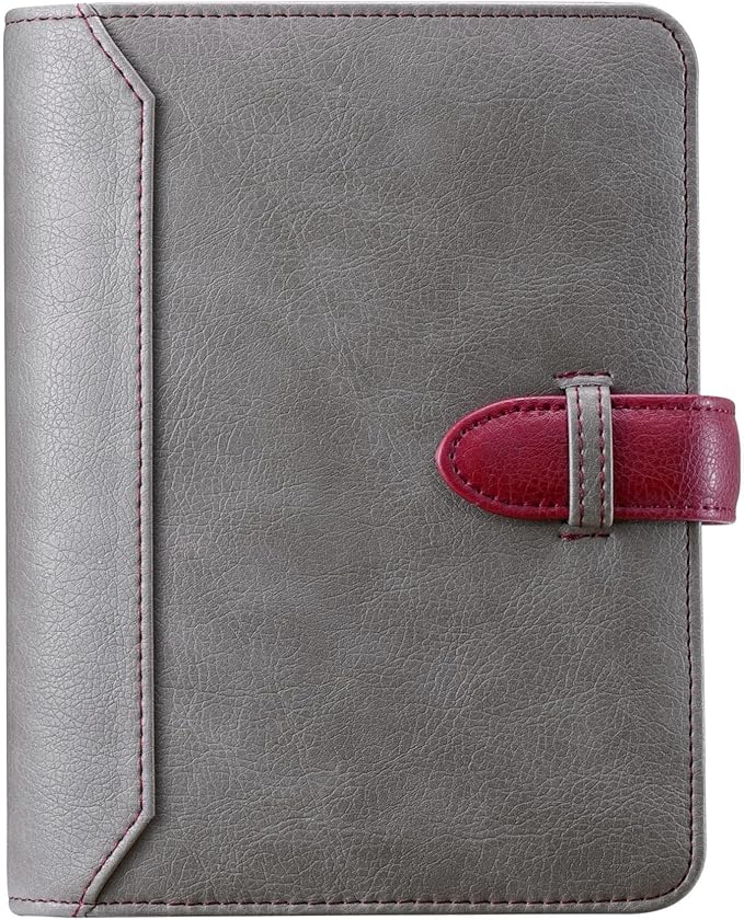 Yiwusoer日記 旅行リフィル式ノート システム手帳 A5/A6 ルーズリーフカスタマイズ 月間週間ディリースケジュール 6リングステンレスバインダー プランナー オーガナイザー (グレー, A6)