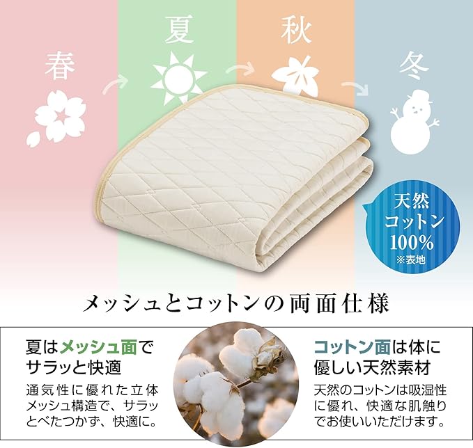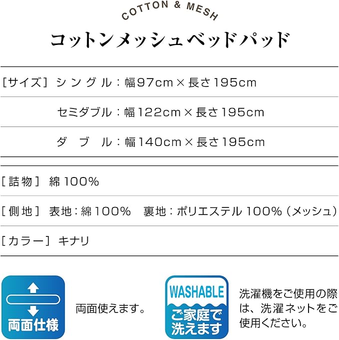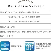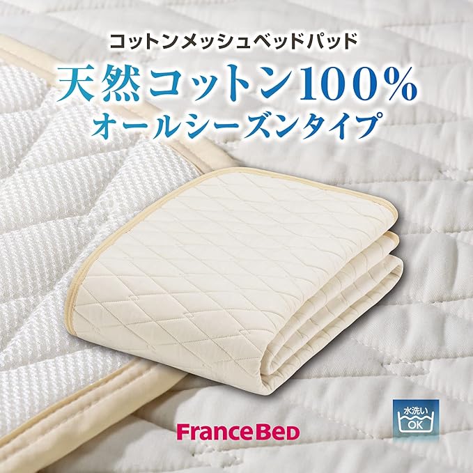 【フランスベッド正規品】 ベッドパッド キナリ セミダブル(122 195cm) 「コットンメッシュ ベッドパッド」 天然コットン100%と立体メッシュ構造で吸湿性、通気性が良く快適にお休みになれます ウォッシャブル 360117260