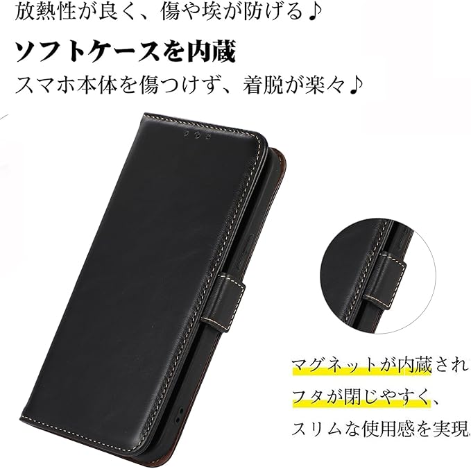 Google Pixel 8A ケース 手帳型 本革 グーグル ピクセル8A 牛革 カバー 財布型 高級本皮 クレイジーホースレザー シンプル手帳ケース 耐摩擦 サイドマグネット式 カード収納 大容量 3枚 横置きスタンド機能 耐衝撃 Ayakumo ブラック, ZPFM-8a-black