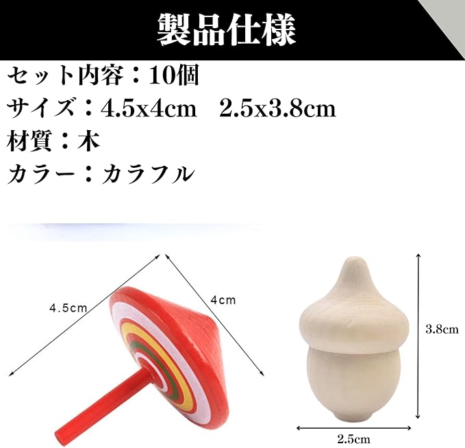 Quikaboo こま コマ 手回しこま おもちゃ コマ回し 相撲こま 逆立ちこま 木製こま 伝統遊び 10個セット