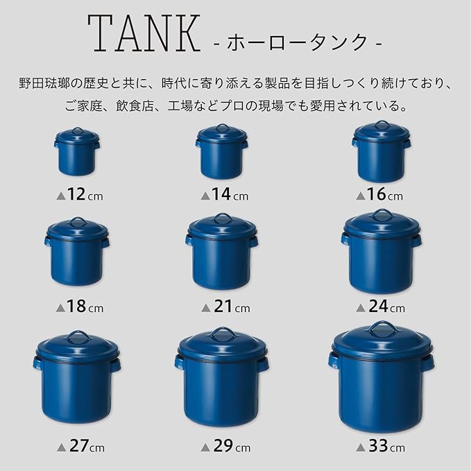 ●野田琺瑯の歴史とともにあるホーロータンク。業務用にも、家庭用にも、豊富なサイズから選べる定番品