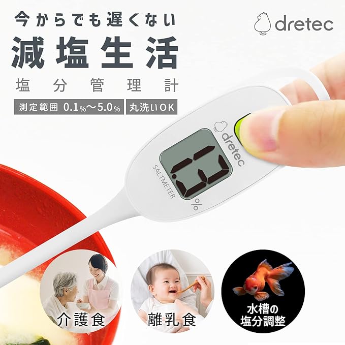 ボタンを押すだけで手軽に塩分濃度が測定できます。