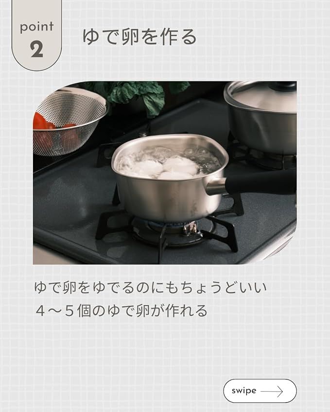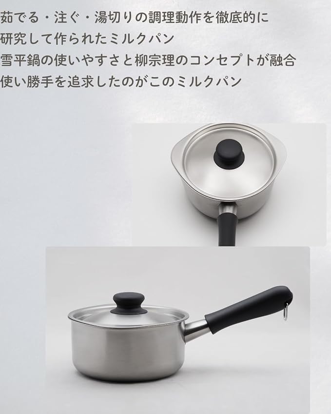16cmのサイズで、小さな量の温めや調理に最適。ミルクやスープを少量だけ温めたいときや、ソースを作る際に便利な柳宗理デザインのミルクパン。