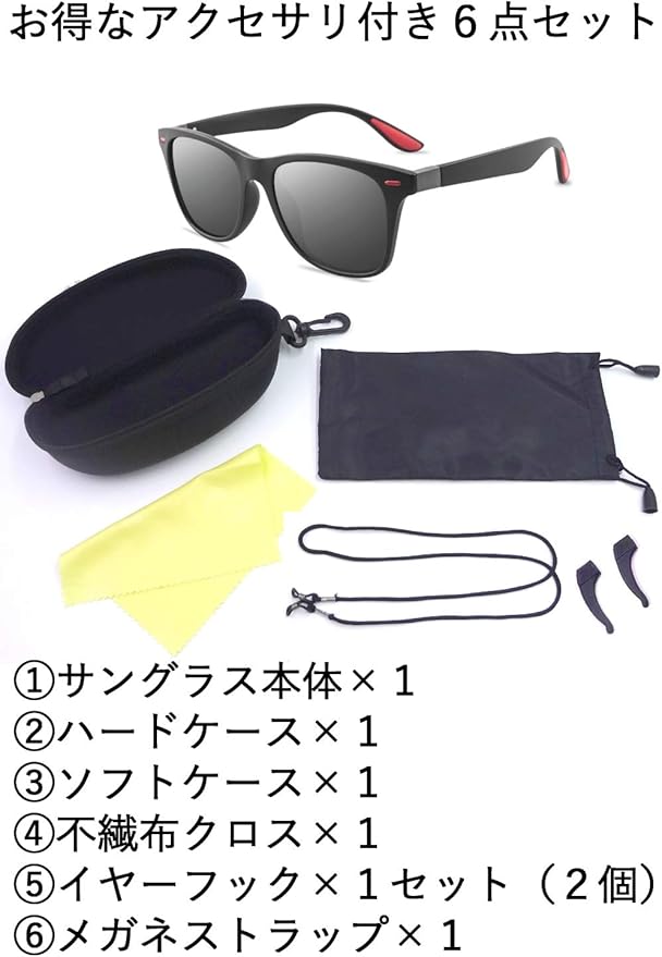 [京都おかげさまで] 調光 偏光 サングラス UV400 紫外線カット 軽量 6点セット 男女兼用