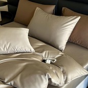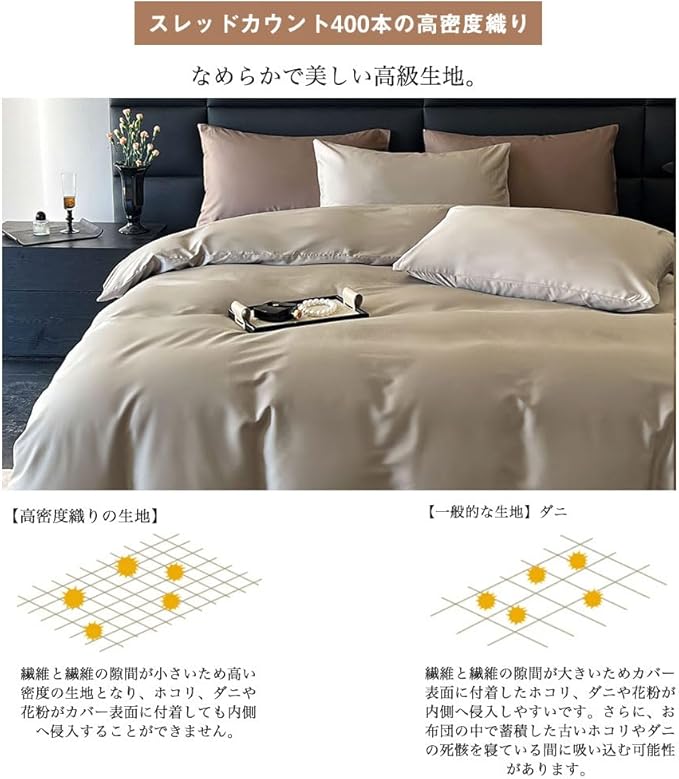 掛け布団カバー セミダブル 綿100% サテン織り 100番手双糸 超長綿 400本高密度生地 ホテル仕様 防ダニ 掛けふとんカバー ふとんカバー 布団カバー シルクのような肌触り 北欧 滑らか 柔らかい (170x210cm, ベージュ)