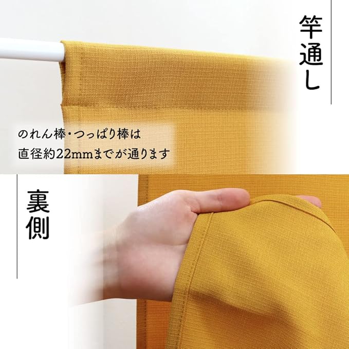 直径約2.2cmまでのポール(棒)を通すことができます。(※つっぱり棒をご使用の場合は、両端のキャップの太さも考慮してください。キャップが取り外せるものもございます。) 程よく光を通しますが透けにくいです。(光っている電気や、明るい窓の形がわかります。)