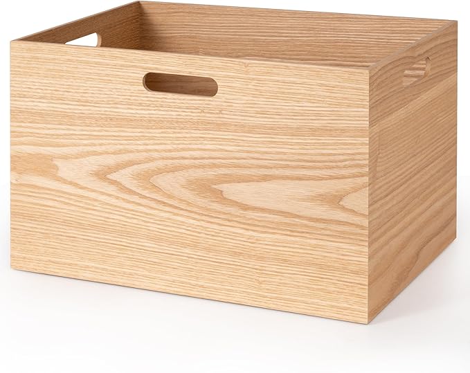 Marsmiles 木製収納ボックス 丈夫な収納ケース ハンドル付き 長方形ボックス 積み重ね収納用品 小物収納 本収納 幅38 奥行26 高さ24cm ナチュラル
