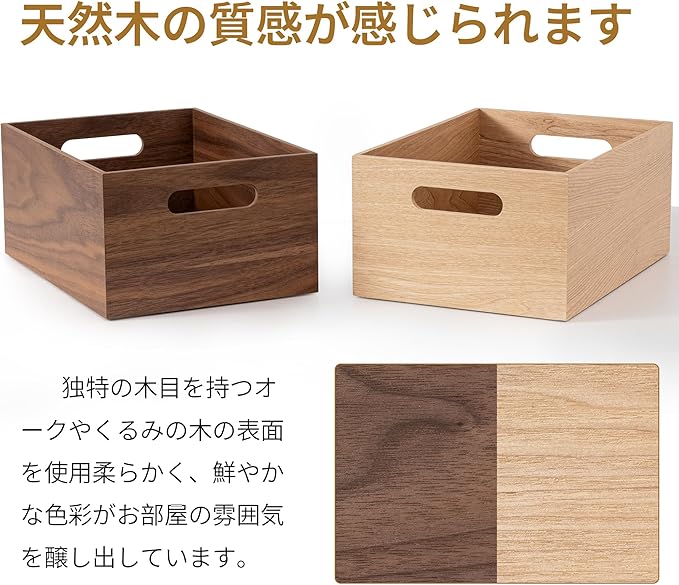 高品質:耐久性のある木製の収納ボックスは、プラスチック製の収納ボックスに代わる理想的な製品です。持ち手が付いていて、持ち上げたり、スライドさせたり、運んだりするのが簡単です