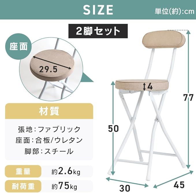 幅約30 奥行約45 高さ約77(座面高:約50)