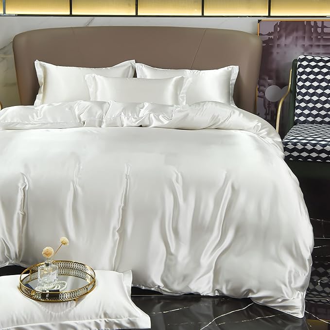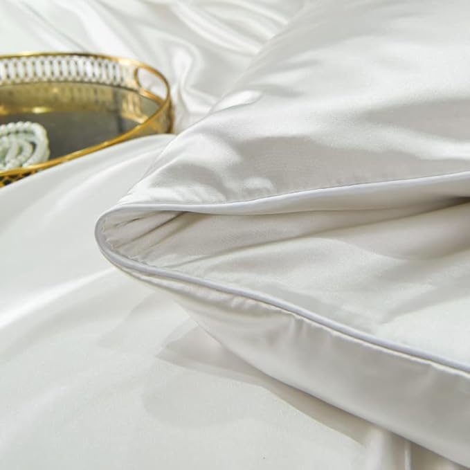 GraceVally Prime 布団カバー 単品 掛け布団カバー 寝具カバー 冷感 ツルツル ふとんかばー 光沢 シルク 無地 おしゃれ セミダブル ホワイト