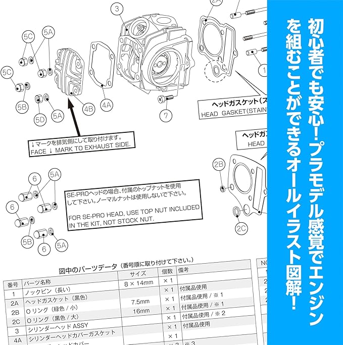 ボアアップKIT を組み上げるまでを作業項目別に、チューニングビギナーにも解りやすく、細かく丁寧にイラストで図解。