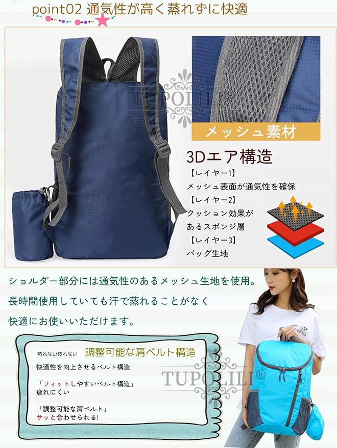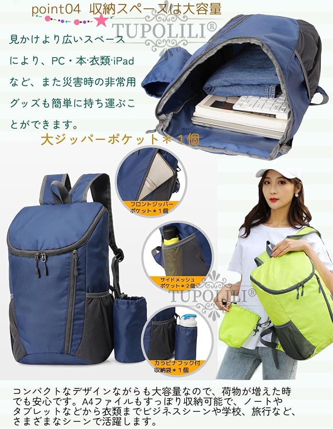 [TUPOLILI] 折りたたみ リュック 登山 買い物 アウトドア 軽量 通学 通勤 撥水 避難 携帯 コンパクト A4 タブレット レディース メンズ 旅行 バックパック ナップサック エコバッグ 収納 バッグ 防災 リュック ポーチ | etshop