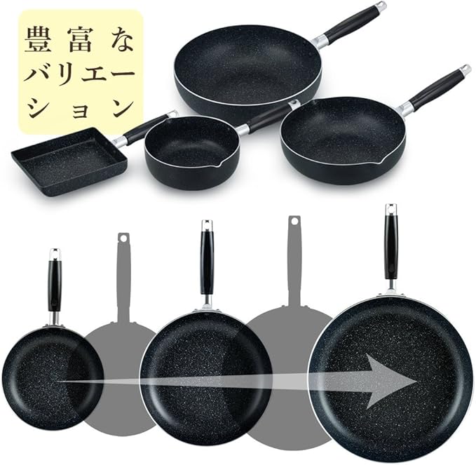 内面は4層コート『ネオ・マーブル』加工で、こびりつきにくく、扱いやすい。