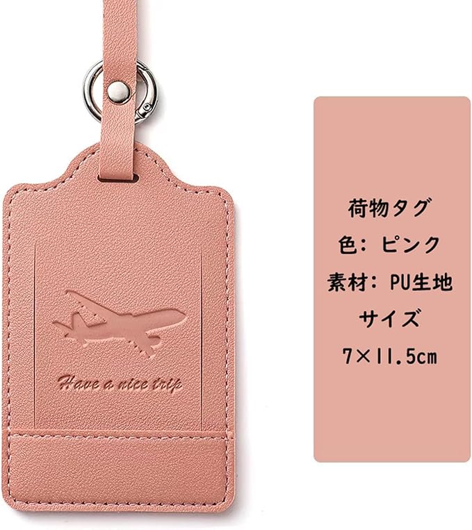 ラゲッジタグのサイズは高さ約11cm 幅7cmで、コンパクトで持ち運びに便利です。ブラックとピンクのカラーオプションがあり、荷物に個性的なタッチを加えることができます。