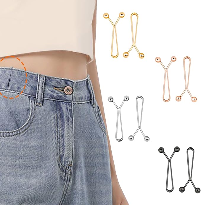 [BaraRose] ウエストクリップ ウエスト調整ボタン 調整クリップ 【4色各2枚、合計8枚】 縫い目ない 合金製 Y字型 バックル ジーンズボタ ン スカートアジャスター ジーンズ調整ボタン ブローチピン ジーンズ、スカート、Tシャツの調整 スカート 詰める