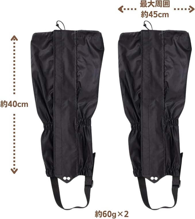 レッグカバー ゲイター 防水 ファスナー マジックテープ 雨 雪 露 水はね 泥 防寒 自転車 アウトドア 屋外作業 通勤 通学 軽量