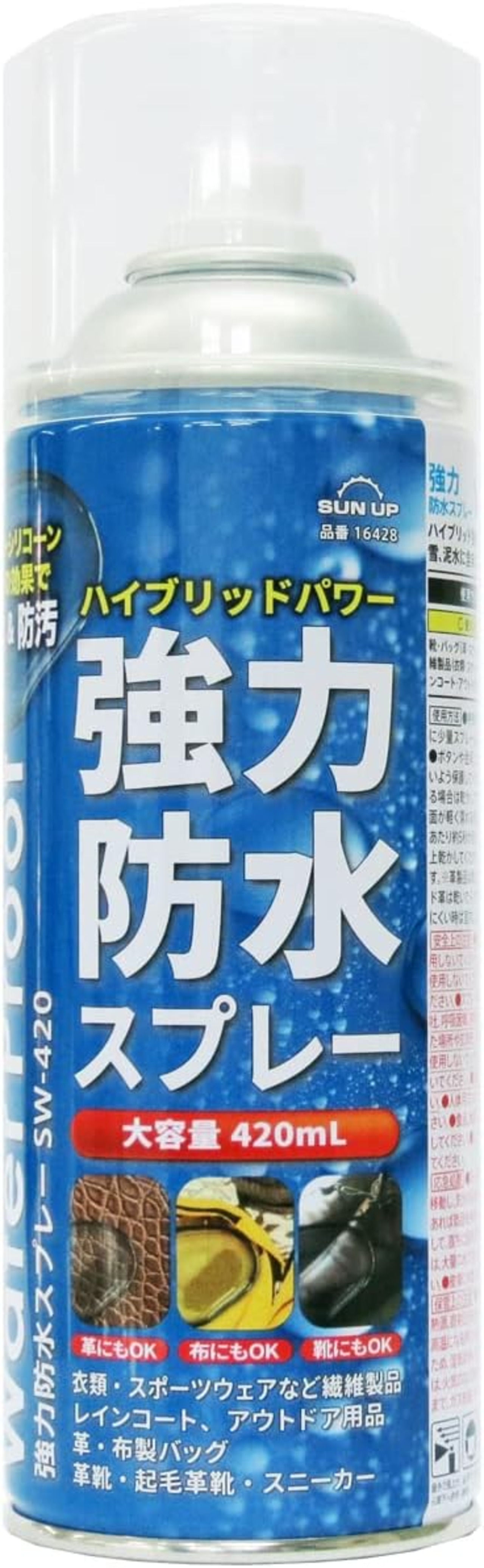 強力な撥水力で大切な靴・バッグ・衣類・アウトドア用品などを雨や雪をガードし、また泥水に含まれる汚れや食べこぼしなどの油汚れからもしっかりガードします。