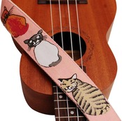 MUSIC FIRSTオリジナルデザイン「MISS CAT」ソフトコットン&本革 ウクレレストラップ