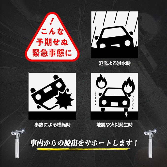 緊急時にドアや窓が開かない際に、サイドガラスを割って車から脱出する道具です。