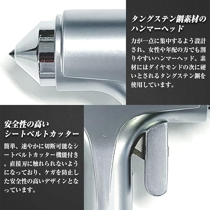 脱出用、レスキューハンマーとして、もしもの時のための必需品です。