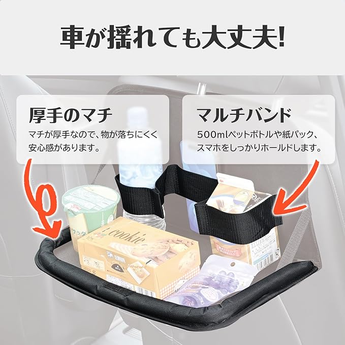 ●マルチバンドで500mlペットボトル、500ml紙パック、スマートフォンも置くことができます。(耐荷重約1.5kg)