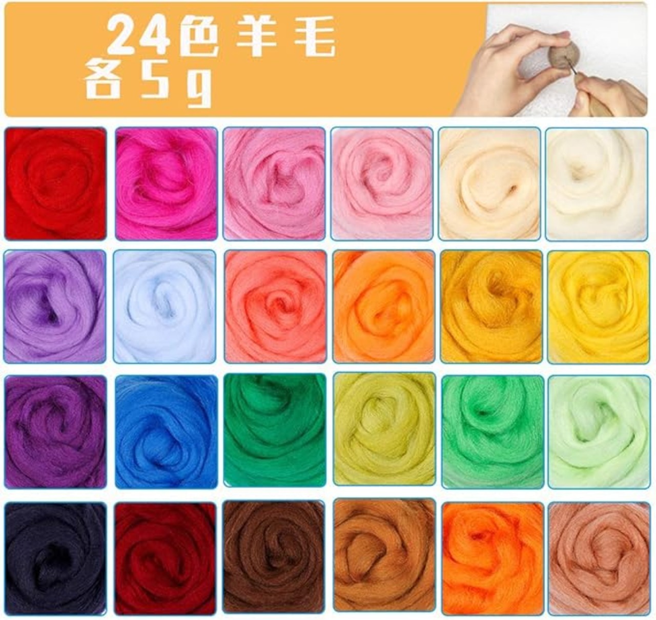 Dennty 羊毛フェルト キットフェルトツールセット 手芸 キットトウールツール 24色 5g 羊毛 スターターセット 初心者 キット 羊毛 ニードル 手作り 工具付き 基本入門 プレゼント | etshop